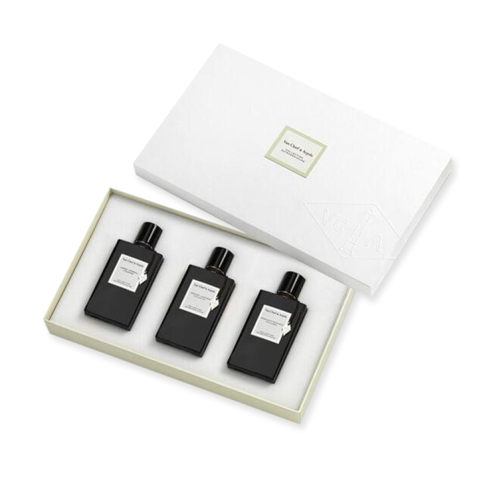 مجموعة عطرية للرجال والنساء تحتوي على 3 من أفضل إصدارات فان كليف "أمبر إمبريال، مون لايت باتشولي، أوركيد ليذر" بحجم 45 مل لكل منهم.