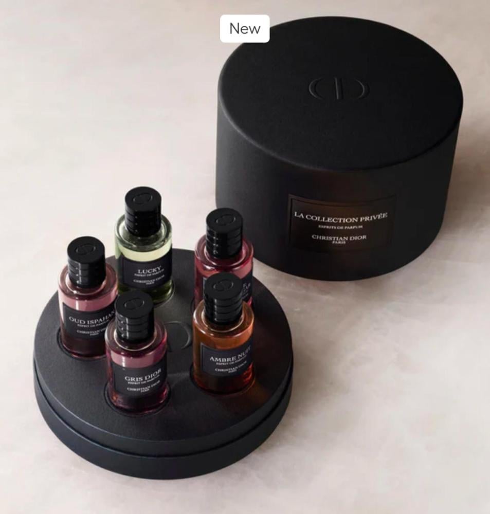 تحتوي هذه المجموعة على: Gris Dior Esprit de Parfum، 7.5 مل، Ambre Nuit Esprit de Parfum، 7.5 مل، Oud Ispahan Esprit de Parfum، 7.5 مل، Lucky Esprit de Parfum، 7.5 مل، Rouge Trafalgar Esprit de Parfum، 7.5 مل.